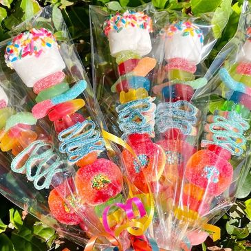 candy kabobs, chocolate legos, aprons, pop-its, crayons and more!
